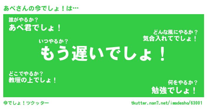 | ヘコむあだ名 | 『あぺにー』『なまこ酢』『あぺ太郎』 |