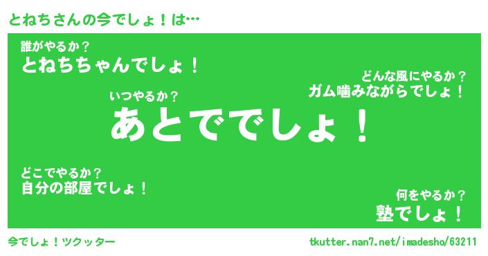 | 肩書あだ名 | 『とねち御曹司』『とねち総理大臣』 |