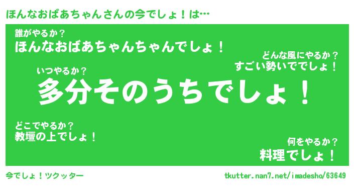 | 料理風あだ名 | 『節約★ほんなおばあちゃんと油揚げの玉子丼』 |