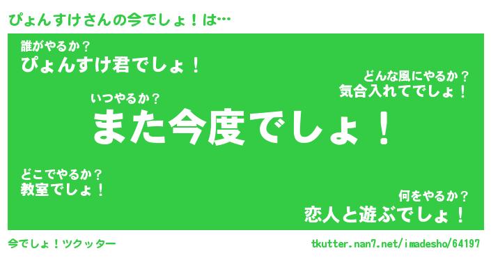 | ヒーロー風カッコイイあだ名 | 『スーパーピョンスケ』『天弓騎士ピョ』 |