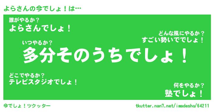 | ヘコむあだ名 | 『よらっふぃ~』『牛乳』『よらっ子』 |