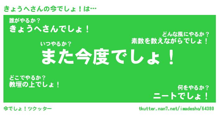 | 意味不明あだ名 | 『ペロリンきょうへ』『永久保存きょうへ』 |