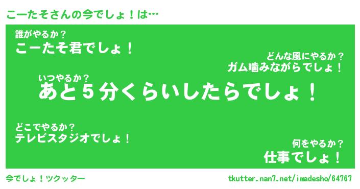 | 意味不明あだ名 | 『ペロリンこーたそ』『永久保存こーたそ』 |