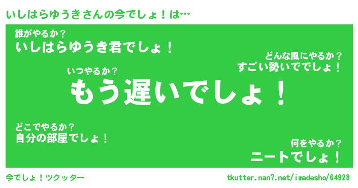 | 男性向けラノベタイトル風あだ名 | 『いしはらゆうきの憂鬱』 |
