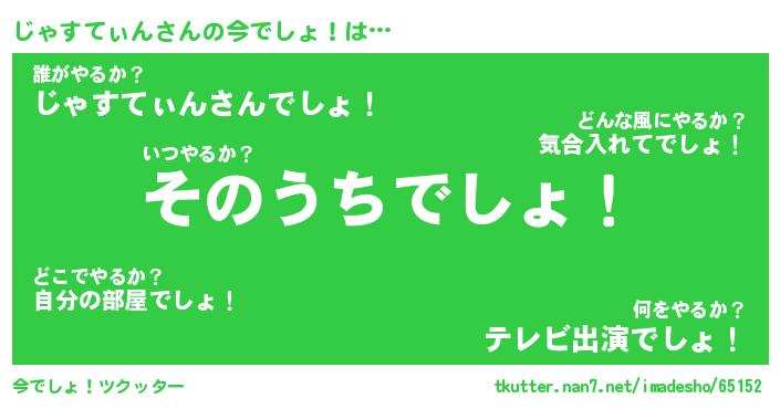 | 伝説のあだ名 | 『伝説のスナイパーじゃすてぃん』 |