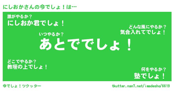 | 意味不明あだ名 | 『ペロリンにしおか』『永久保存にしおか』 |