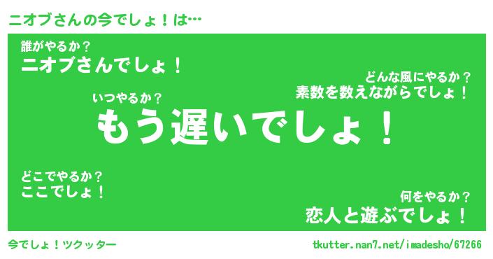 | 2回繰り返すあだ名 | 『ニオニオ』『ニニオオ』『おやおや』 |