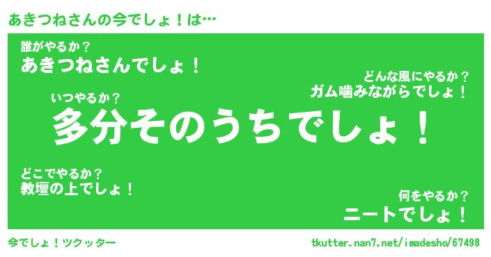 | 意味不明あだ名 | 『ペロリンあきつね』『永久保存あきつね』 |