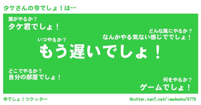 | 男性向けラノベタイトル風あだ名 | 『タケの憂鬱』『ノーゲーム・ノータケ』 |