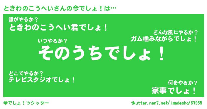 | 胡散臭い通販商品みたいなあだ名 | 『必ず成功するブレスレット…その名も「ときわのこうへい」』 |