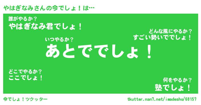 | 胡散臭い通販商品みたいなあだ名 | 『モテモテ間違いなし霊験あらたかなお札…その名も「やはぎなみ」』 |