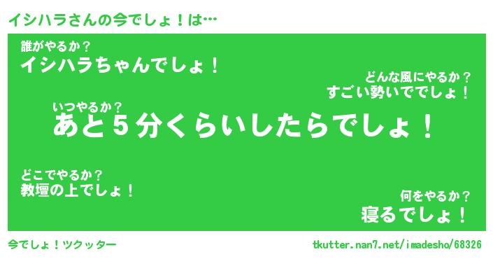 | ファンタジー風あだ名 | 『イシフェル』『エターナルイシハラー』 |