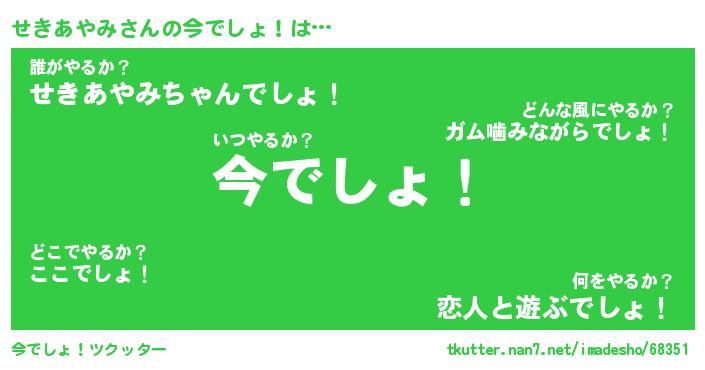 | 肩書あだ名 | 『せきあやみ社長』『せきあやみ大統領』 |