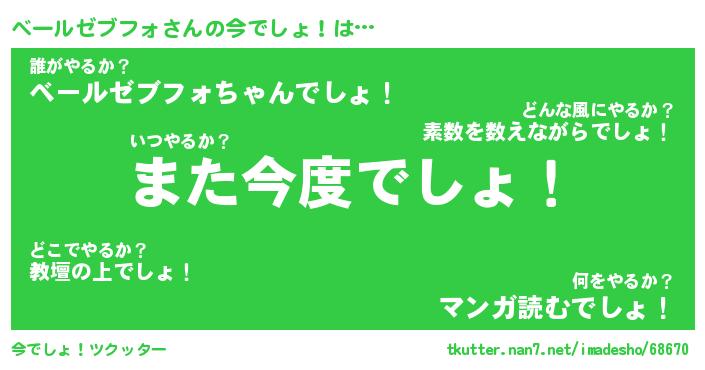 | 男性向けラノベタイトル風あだ名 | 『ベールゼブフォアートオンライン』 |