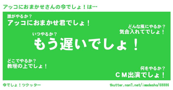 | 艦これ | 提督の名前『アッコにおまかせ提督』 |