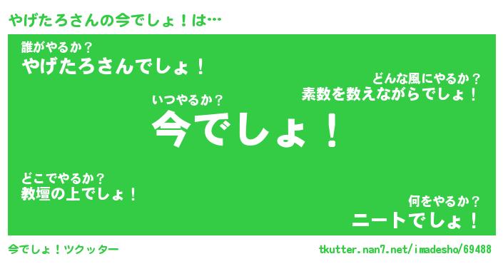 | 意味不明あだ名 | 『ペロリンやげたろ』『永久保存やげたろ』 |