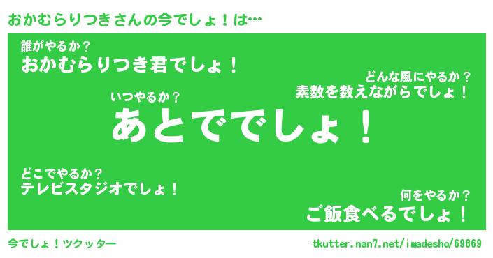 | ツイッター | おかむらりつきさんのツイッターID『dendenmushi_kun』 |