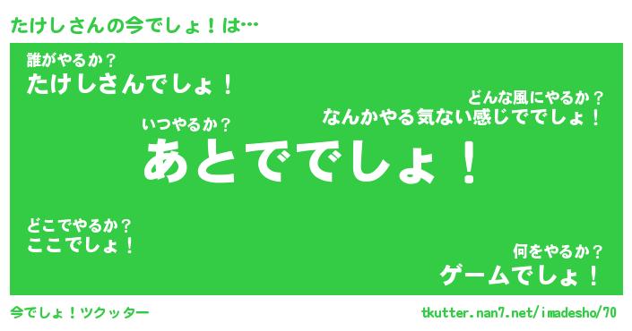 | ファンタジー風あだ名 | 『タケフェル』『エターナルタケシー』 |