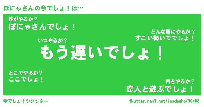 | 女子向けラノベタイトル風あだ名 | 『(仮)ぽにゃのやんごとなき事情』 |