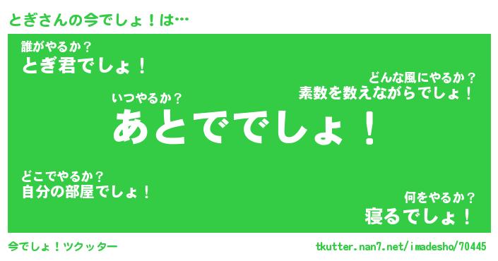 | ヘコむあだ名 | 『とぎにー』『豆乳』『とぎっぺ』 |