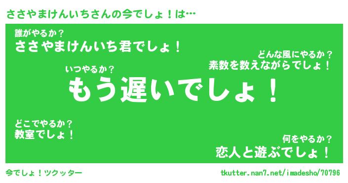 | 男性向けラノベタイトル風あだ名 | 『ささやまけんいちの憂鬱』 |