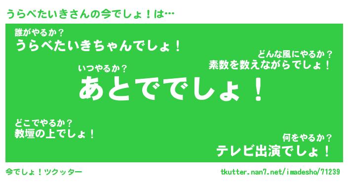| ピコ太郎風あだ名 | 『ウコ四郎』『ピウ三郎』『ウラ次郎』 |
