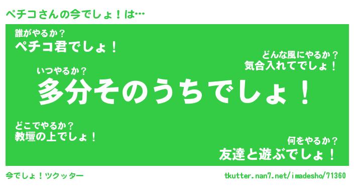 | ヒーロー風カッコイイあだ名 | 『スーパーペチコ』『ウルトラペチコマン』 |