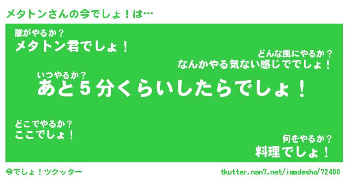 | ヘコむあだ名 | 『メタにー』『豆乳』『メタぷりん』 |