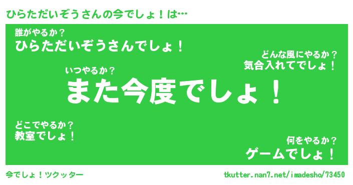 | ヒーロー風カッコイイあだ名 | 『スーパーヒラタダイゾウ』 |
