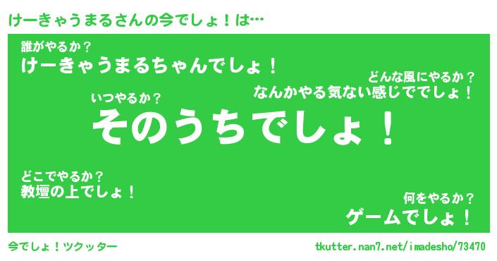 | 男性向けラノベタイトル風あだ名 | 『けーきゃうまるの憂鬱』 |
