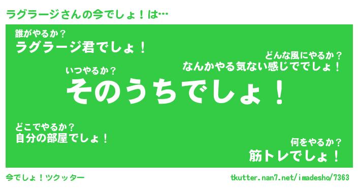 | ヘコむあだ名 | 『ラグっふぃ~』『豆乳』『ラグっ子』 |