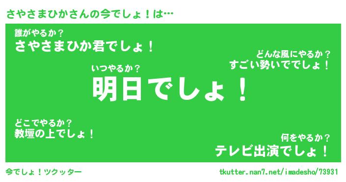 | 恥ずかしいあだ名 | 『プリティーさやさまひか』『さやっちょ』 |