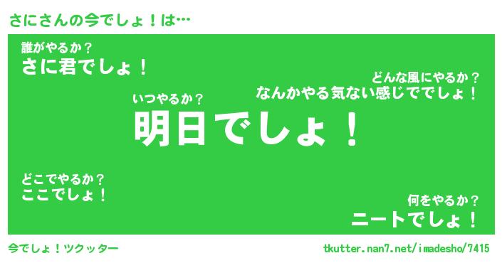 | ヘコむあだ名 | 『さににゅー』『なまこ酢』『さにお』 |