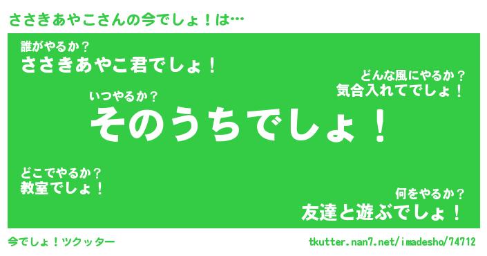 | 伝説のあだ名 | 『伝説のスナイパーささきあやこ』 |