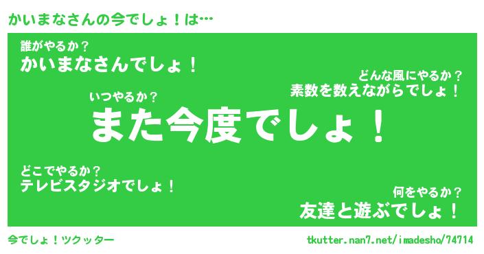 | 意味不明あだ名 | 『ペロリンかいまな』『永久保存かいまな』 |
