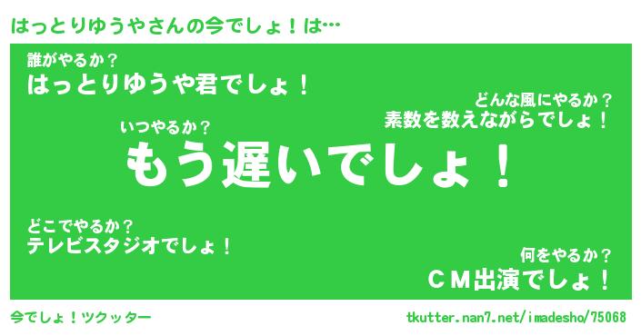 | 女子向けラノベタイトル風あだ名 | 『(仮)はっとりゆうやのやんごとなき事情』 |