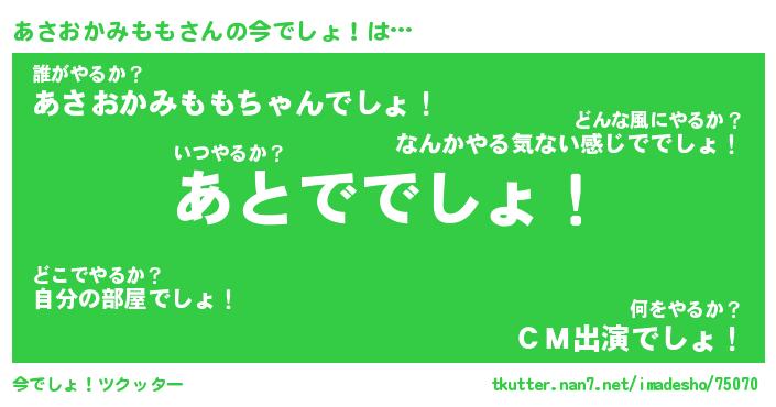 | 恥ずかしいあだ名 | 『プリティーあさおかみもも』『あさちん』 |