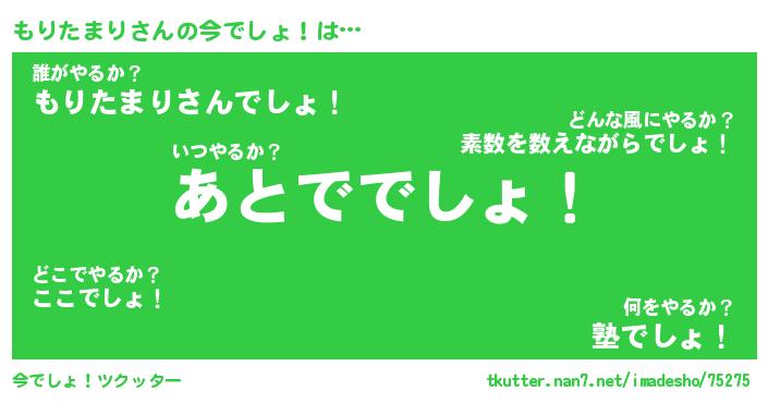 | ヒーロー風カッコイイあだ名 | 『スーパーモリタマリ』『魔戒騎士モリ』 |