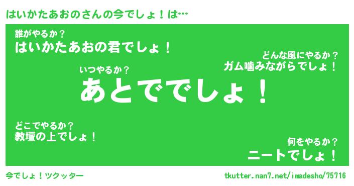 | 胡散臭い通販商品みたいなあだ名 | 『モテモテ間違いなし霊験あらたかなお札…その名も「はいかたあおの」』 |