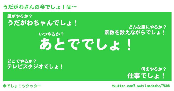 | 肩書あだ名 | 『うだがわ社長』『うだがわ総理大臣』 |