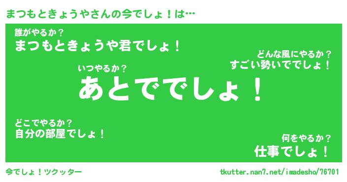 | ツイッター | まつもときょうやさんのツイッターID『katatsumuri_star』 |