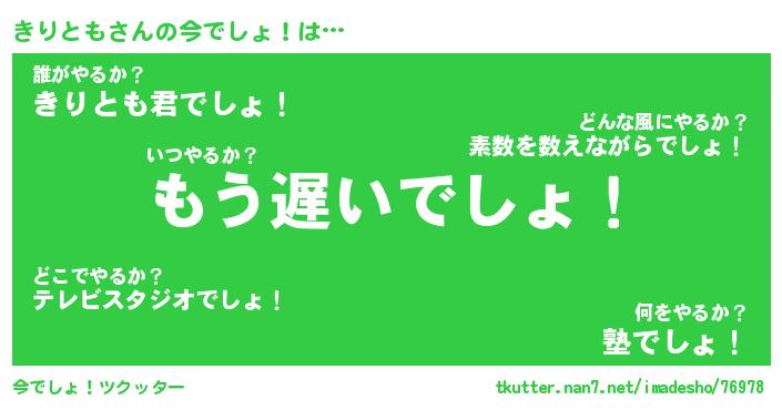 | 胡散臭い通販商品みたいなあだ名 | 『必ず成功するブレスレット…その名も「きりとも」』 |
