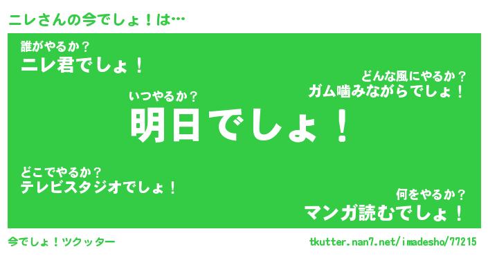 | ヘコむあだ名 | 『ニレもー』『なまこ酢』『ニレ(笑)』 |