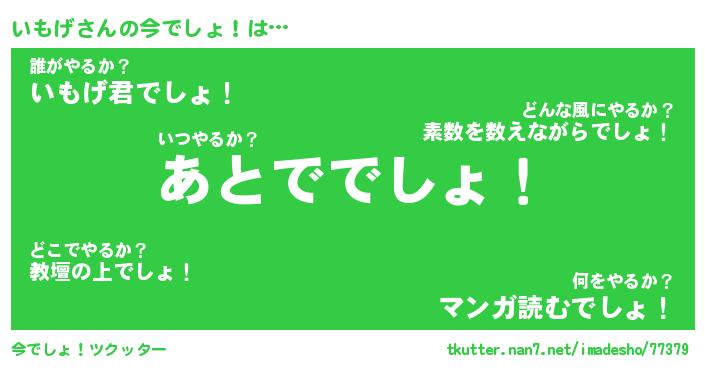 | 胡散臭い通販商品みたいなあだ名 | 『モテモテ間違いなし霊験あらたかなお札…その名も「いもげ」』 |