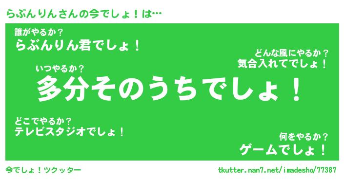 | 男性向けラノベタイトル風あだ名 | 『らぶんりんの憂鬱』 |