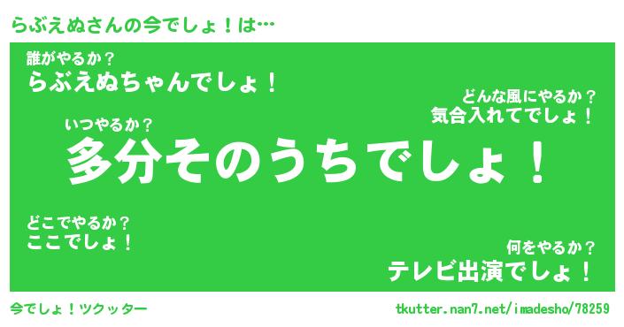 | 意味不明あだ名 | 『ペロリンらぶえぬ』『永久保存らぶえぬ』 |