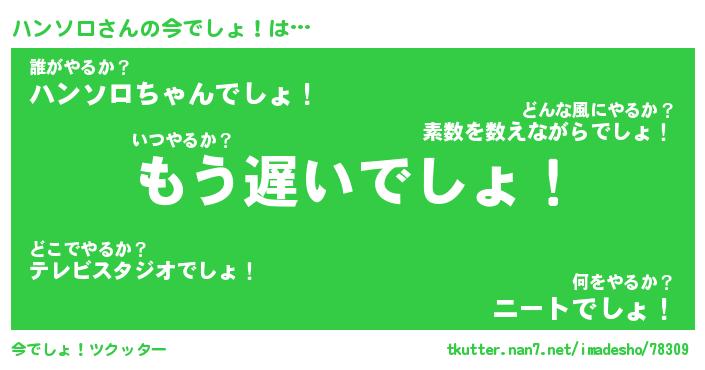 | 意味不明あだ名 | 『ペロリンハンソロ』『永久保存ハンソロ』 |