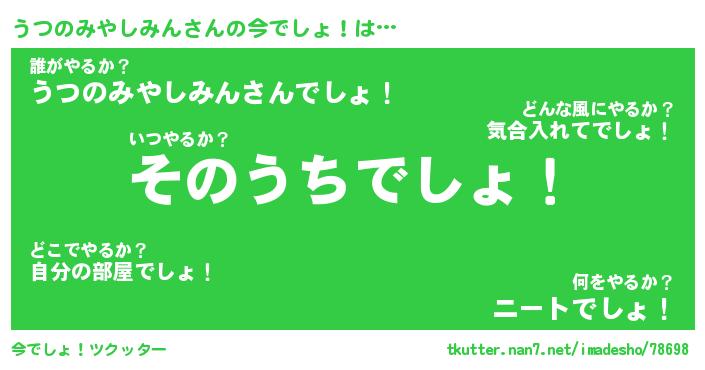| 胡散臭い通販商品みたいなあだ名 | 『必ず成功するブレスレット…その名も「うつのみやしみん」』 |