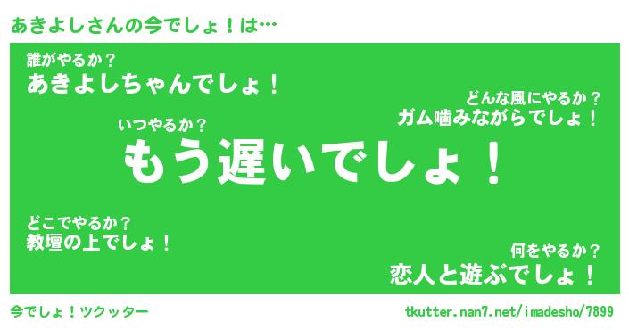 | 意味不明あだ名 | 『ペロリンあきよし』『永久保存あきよし』 |