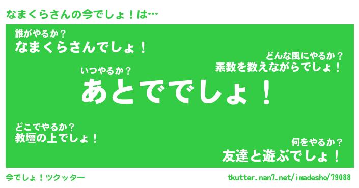 | 2回繰り返すあだ名 | 『なまなま』『ななまま』『うねうね』 |